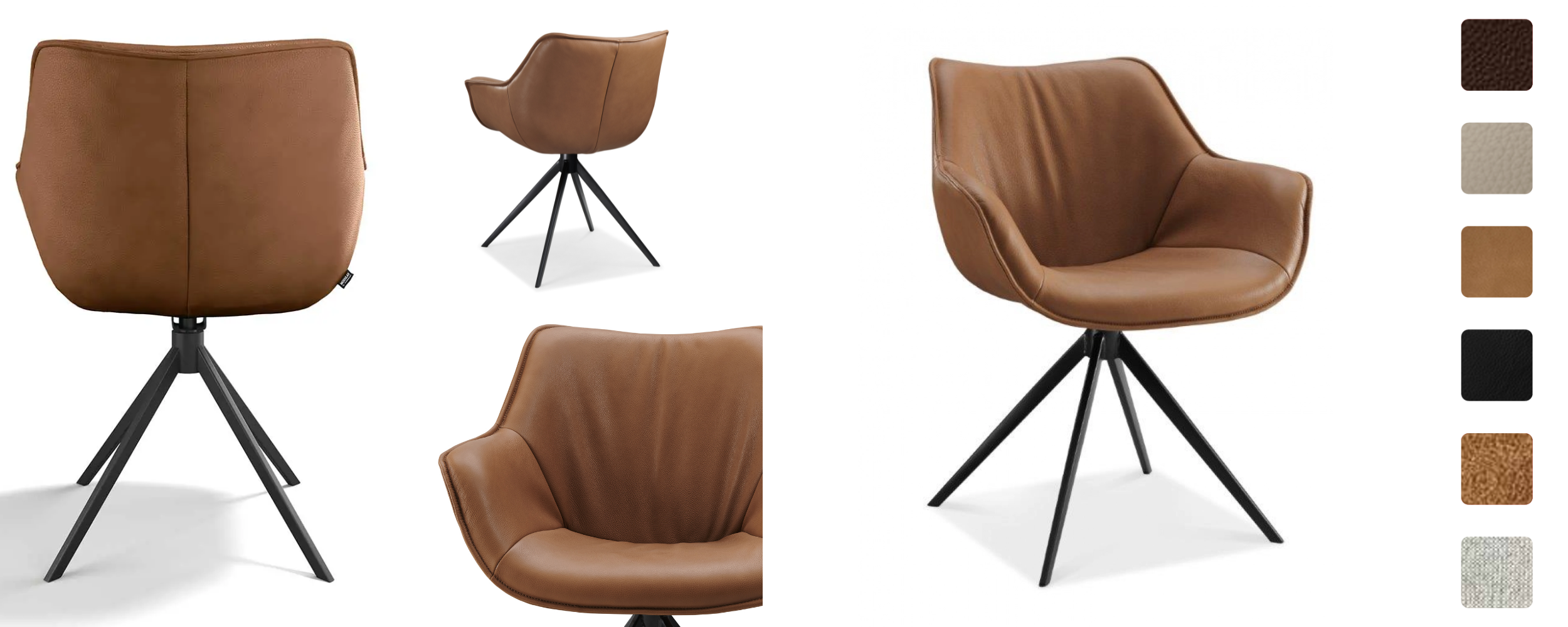 The ergonomically designed seat provides optimal support, while the 360-degree swivel function allows for effortless movement. The sturdy black metal base ensures long-lasting durability and stability. Whether placed around a dining table, in an office, or as an accent chair, the Padua Caramel Chair enhances any setting with its timeless appeal.